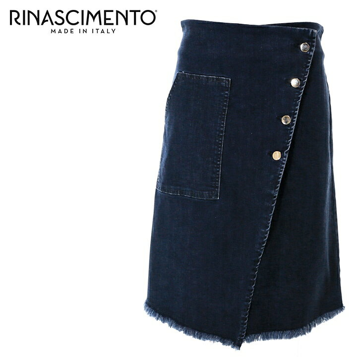★Rinascimento リナシメント レディース★ビッグポケット 裾カットオフ 膝丈 台形スカート デニムスカート【サイズXS・S】【ダークインディゴ】rin-l-s-a4-819 《メーカー希望小売価格16,500円》