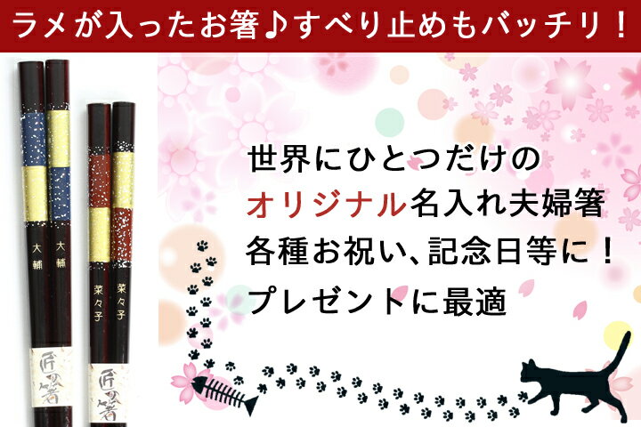 商品説明 きれいなラメが入った夫婦箸セット。