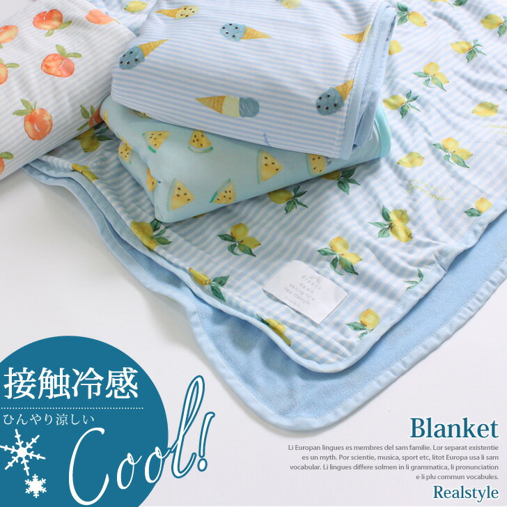 【代引不可】冷感 ひんやり 夏用 ひざ掛け 膝掛け おしゃれ かわいい レモン柄 子供部屋 ベビー ベビーカー お昼寝用 約70×100cm Sサイズ/ 冷感ブランケットS スマイル