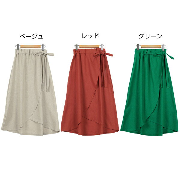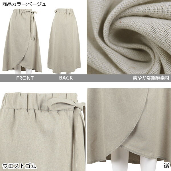 トレンド感溢れるリネンタッチ生地のラップ風スカート。