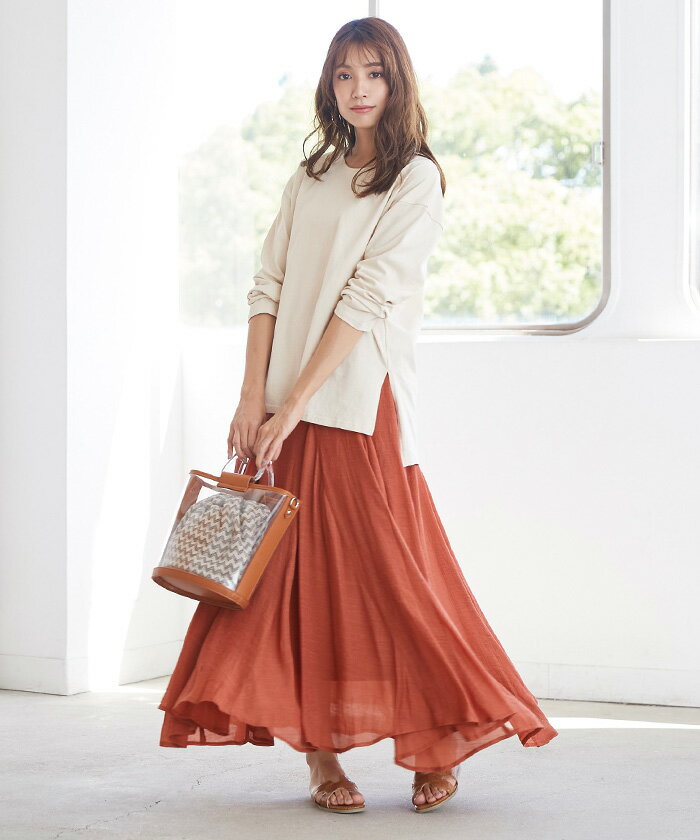 model / 瑞帆 (height:165cm) 商品詳細 商品説明 ナチュラルでリラックス感のあるロング丈スカート。